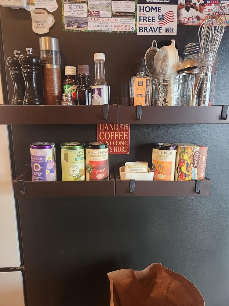 Reclaim counter space by turning the side of your fridge into instant storage with this heavy-duty steel rack. Its powerful magnets hold essentials securely without drilling or tools.
